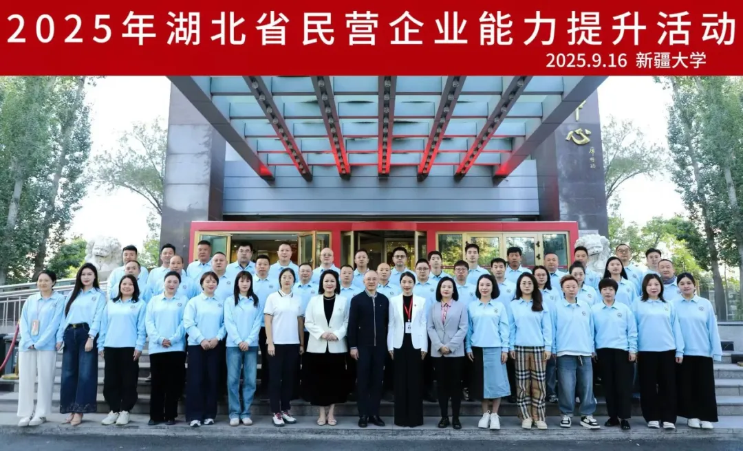 9月15日至19日,2025年湖北省民营企业能力提升活动在新疆大学成功举办。本次活动由湖北省人才事业发展中心主办,湖北腾飞人才股份有限公司承办,近40家省内民营企业代表参加活动。我会选送副会长徐思波、理事邱生善、副会长企业高管陶梦玲等3名代表参加。