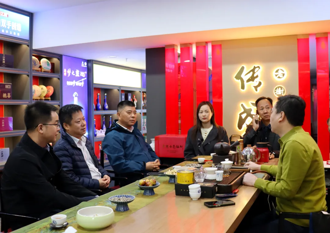 走访首站武汉子又商贸有限公司,总经理卫玉峰对轮值走访团的到来表示热烈欢迎。子又商贸长期致力于中高端酒茶产品的运营,主营传成老树白茶全系列、洋河酒及贵州贵酒等品牌产品,并于2022年成为清铧股份旗下“传成老树白茶”全系列湖北省总运营商。